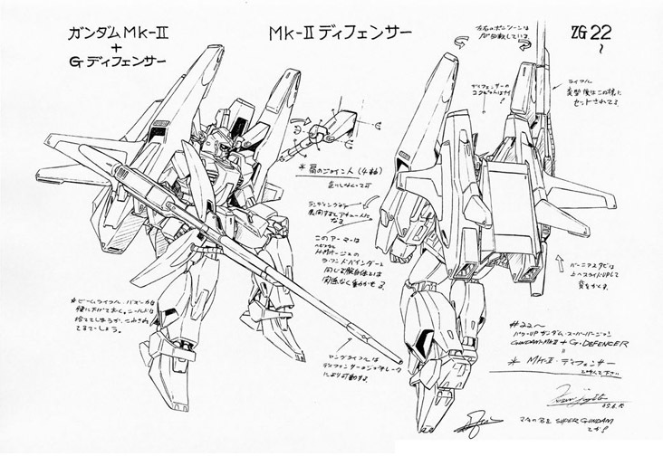 “RX-178 GUNDAM Mk-Ⅱ”虽属高性能机体,但装甲材料陈旧,并有一些微小缺陷。为此,为了加强其火力及装甲,延长续航时间,开发出了新机型——“FXA-05D G战机”,G战机的设计前提是与Mk-Ⅱ合并使用的。不过单独作为宇宙战斗机,性能也十分优秀。与Mk-Ⅱ合并成超级高达后,若作为MS使用,操纵舱便会分离,成为小型宇宙战斗机“核心战斗机”,独立飞行。Mk-Ⅱ与G战机的合并机体通称为超级高达,而装载Mk-Ⅱ时的航行形态称为“G装备”。合并后Mk-Ⅱ就能使用14连装的导弹发射器和大功率高能光束步枪,大幅度增强了火力。G装备也充分显示了装甲坚固、助推器推力大等优势。“FXA-05D G战机”由小林隼人的养子卡兹驾驶。在格利普斯战争后期的战斗中,本机在被RX-139 汉布拉比的攻击中屡次暴露出耐电性不强的弱点,因此后来便对机体的耐电性进行了强化。 |